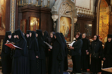 Монастырские священнослужители соборно отслужили последование молебна святителю Николаю перед ковчегом с мощами. Зачатьевский хор исполнил тропари, припевы, икосы акафиста, и все молящиеся возносили свои благодарения, прошения и моления великому угоднику Божию, скорому помощнику, в бедах заступнику, во благих делах споспешнику святителю Николаю Чудотворцу, близость которого во время молебна особенно явственно ощущалась всеми.
