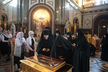5 июля 2017 года настоятельница Зачатьевского ставропигиального женского монастыря игумения Иулиания (Каледа) с сестрами, духовенство и благочестивые трудники Зачатьевской обители с 07.00 до 08.00, до начала утреннего богослужения, совершили молебное пение с каноном и акафистом святителю Николаю, Мир Ликийских Чудотворцу, перед ковчегом с частью мощей святого в Храме Христа Спасителя.