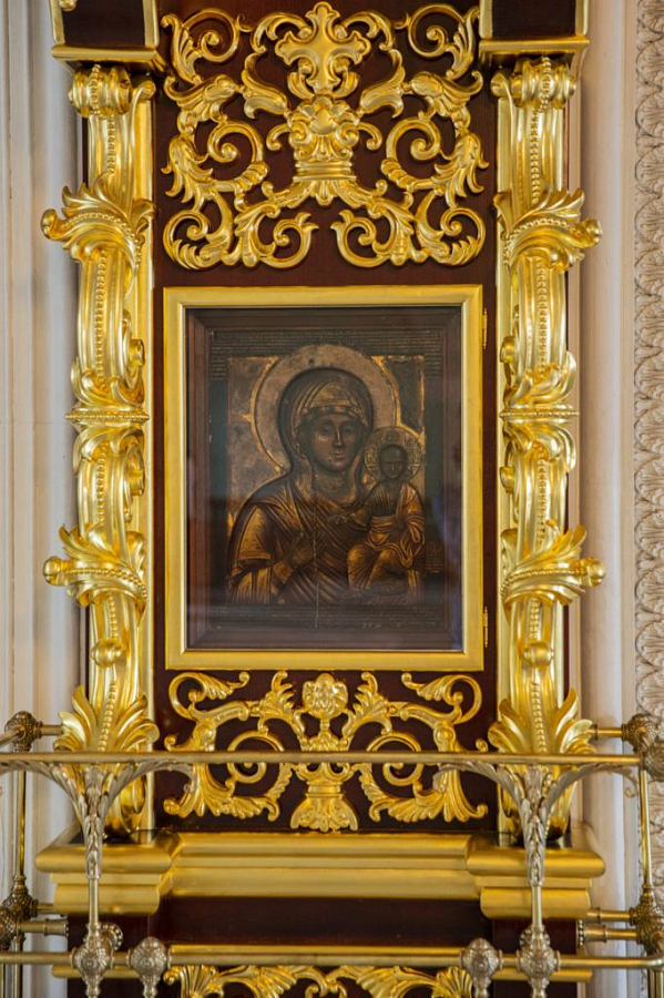 В храм, построенный Петром I в 1684–1690 годах, были подарены напольные киоты в общем для всего храма стиле нарышкинского барокко. Благодаря этому стало возможно размещение святынь в доступном для всех паломников храмовом пространстве. Ранее они износились из алтаря лишь в праздничные дни.