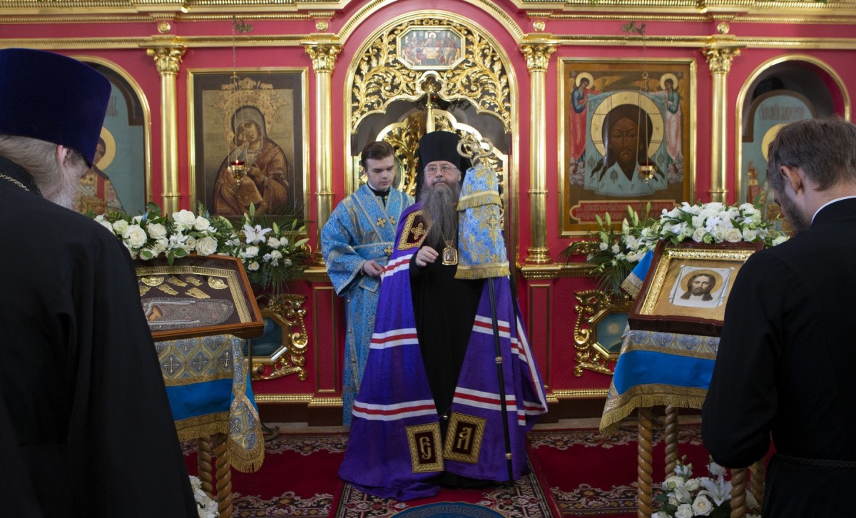 В завершение состоялся молебен с акафистом Нерукотворному Образу Спасителя в монастырском соборе Рождества Пресвятой Богородицы.