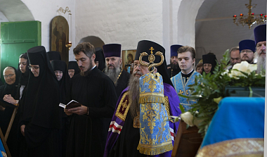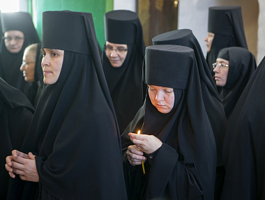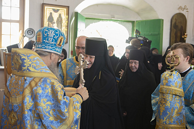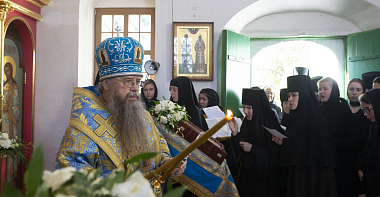 «Всех поздравляю с праздником: благочестивых отцов, матушку игумению с сестрами. Благодарю Святейшего Патриарха за благословение служить здесь, в этой святой обители, в престольный праздник этого замечательного храма.