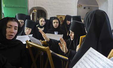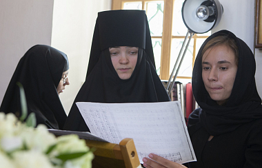 За Литургией молились заместитель председателя Синодального отдела по монастырям и монашеству, настоятельница Зачатьевского ставропигиального женского монастыря игумения Иулиания (Каледа) с сестрами и гостями обители.