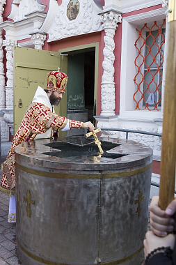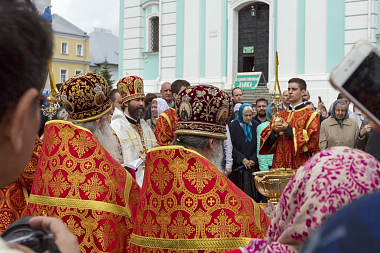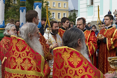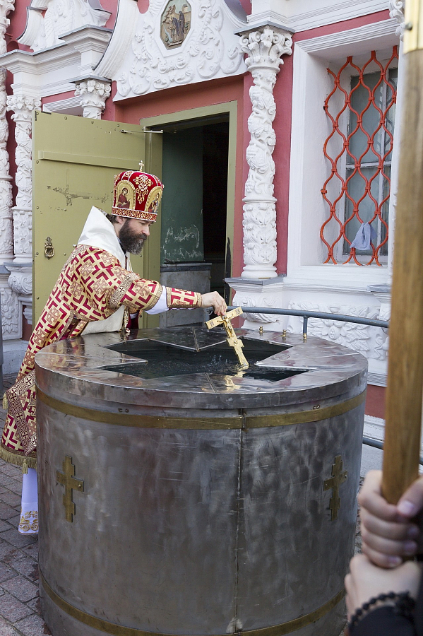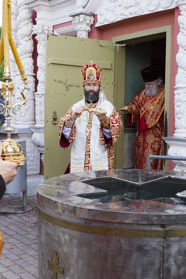По окончании Литургии на Соборной площади возле Надкладезной часовни состоялся молебен с водосвятием, который отслужили владыка Андрей с братией обители.