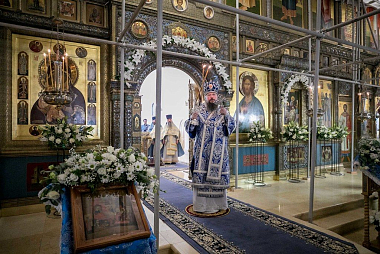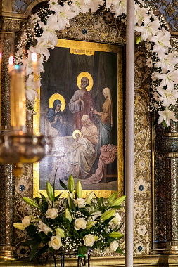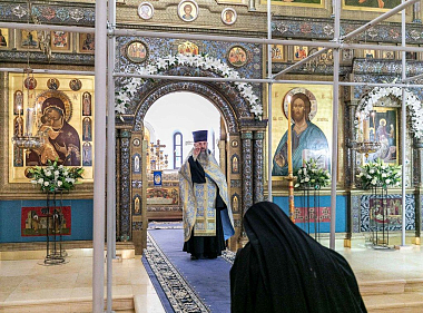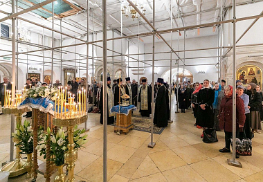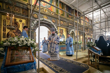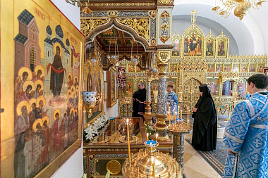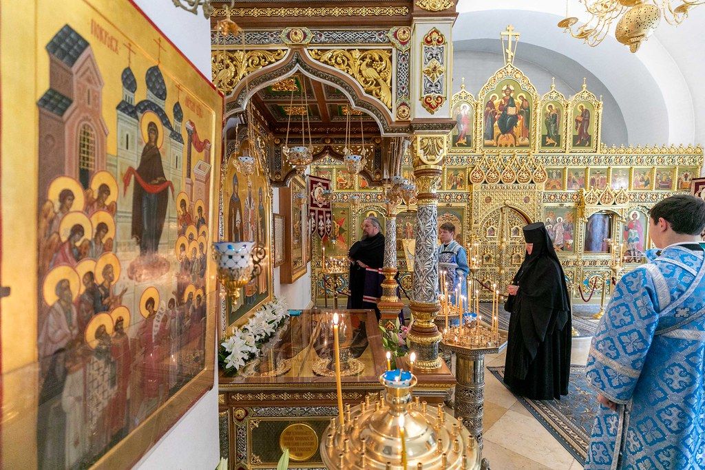 Накануне в соборе состоялось праздничное всенощное бдение с литией, крестным ходом и славословием. В сам день двунадесятого праздника Божественную литургию возглавил Преосвященный епископ Воскресенский Дионисий, викарий Святейшего Патриарха Московского и всея Руси, в сослужении клириков обители. По завершении Литургии владыка Динисий обратился к пастве с архипастырским словом: