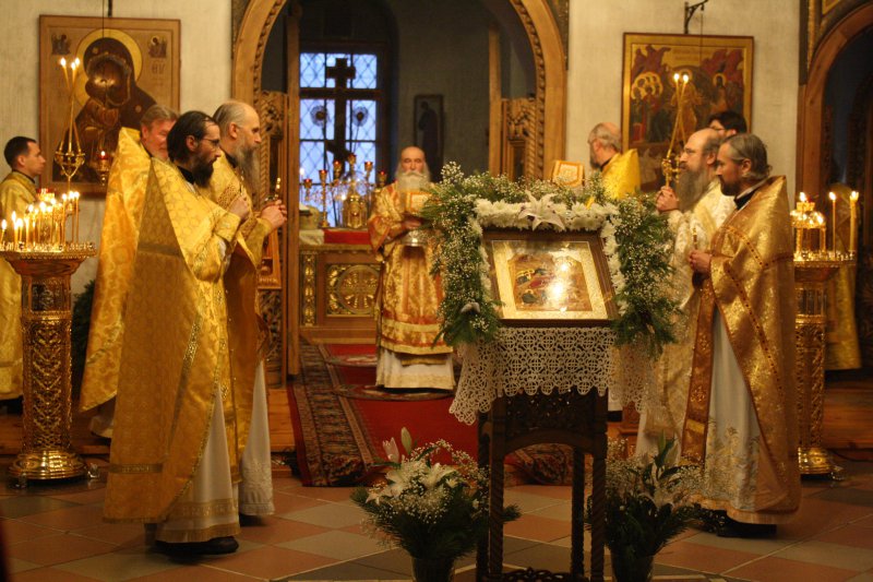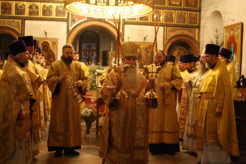 Его Преосвященству сослужили: благочинный Параскево-Пятницкого церковного округа протоиерей Анатолий Кожа, благочинный Андреевского церковного округа протоиерей Николай Карасев, члены Совета Юго-Западного викариатства, настоятели приходов и подворий, клирики викариатства и обители.