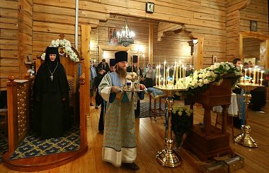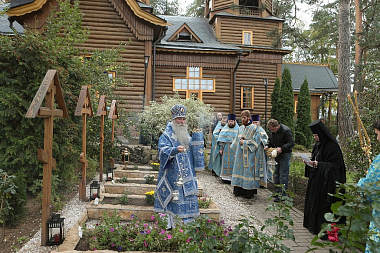 По окончании Литургии Преосвященнейший Владыка и все молящиеся прошли торжественным крестным ходом вокруг храма и сугубо помолились у могил насельниц монастыря, нашедших последний приют на земле подворья.