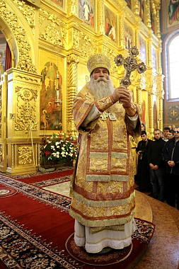Его Преосвященству сослужили наместник Николо-Угрешского ставропигиального мужского монастыря игумен Варфоломей (Петров) с братией обители в священном сане.