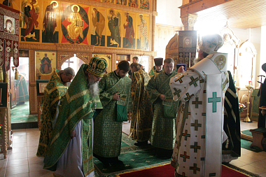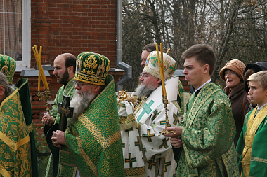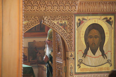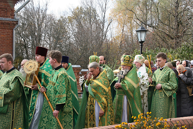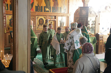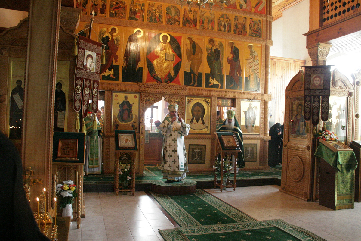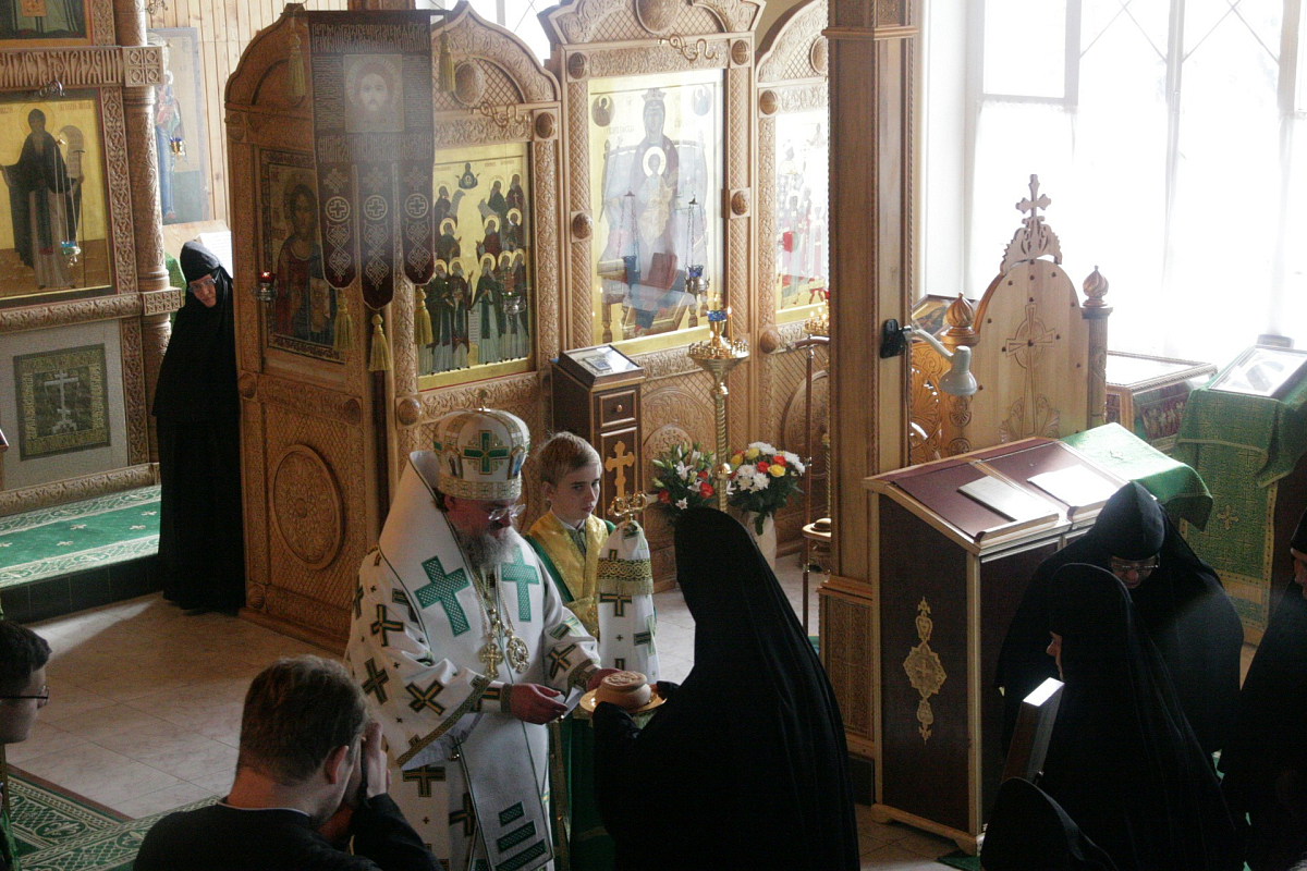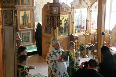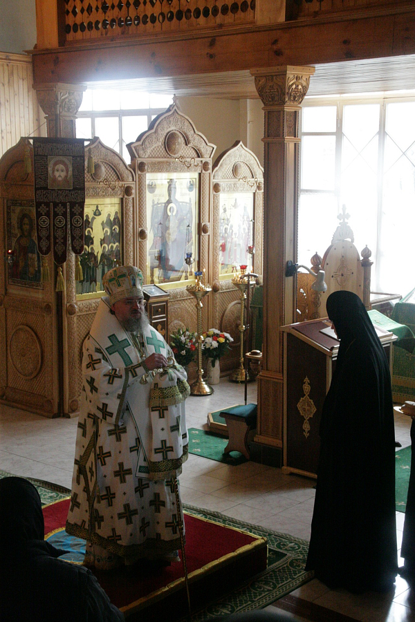 Затем Его Преосвященство поздравил настоятельницу монастыря игумению Сергию (Щербакову), всех сестер и паломников с престольным праздником.