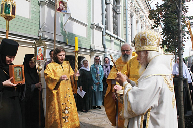 Поздравляю вас с престольным праздником этого храма, который устроила здесь преподобномученица Великая княгиня Елисавета Феодоровна, в котором она молилась, думала об устройстве обители, готовилась к своему подвигу служения ближним и мученическому подвигу. Этот храм – великая святыня для нас всех, поэтому сегодня очень большой и радостный праздник.