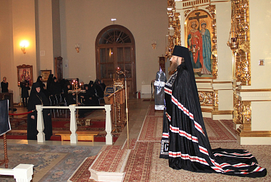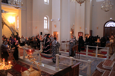 Его Преосвященству сослужили клирики Кресто-Воздвиженской Иерусалимской обители.