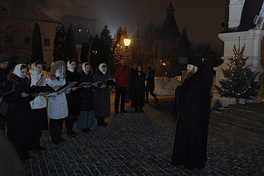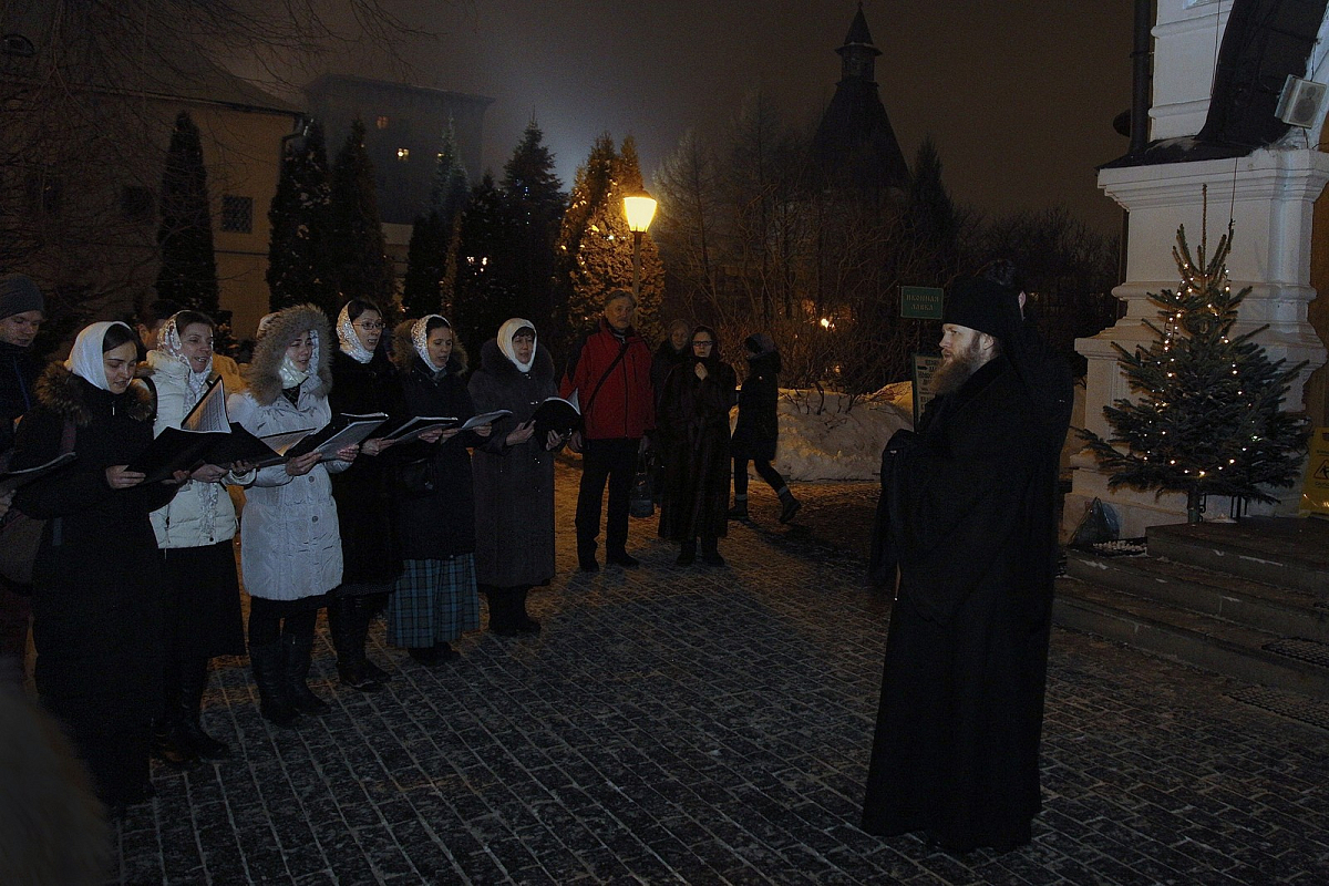 По завершении богослужения архипастырь поздравил верующих с предпразднством Богоявления и памятью преподобного Серафима Саровского. Затем миссионерский хор «Правило веры» Православного молодежного движения «Молодая Русь» Новоспасского монастыря исполнил для наместника обители рождественские колядки.