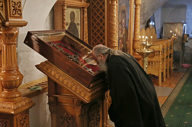 Сопровождал делегацию викарий Святейшего Патриарха Московского и всея Руси епископ Орехово-Зуевский Пантелеимон.