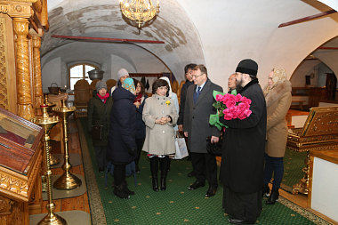В сопровождении наместника монастыря архимандрита Сергия (Воронкова) гости посетили храм во имя Преподобного Иосифа Волоцкого и Успенский собор.