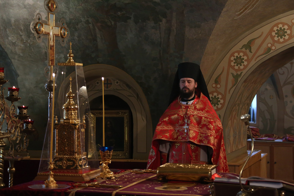 За Божественной литургией вместе с иноками монастыря служил ректор Николо-Угрешской Духовной семинарии игумен Иоанн (Рубин).