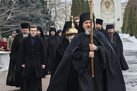 Его Высокопреподобию сослужили эконом обители игумен Иннокентий (Ольховой), игумен Гермоген (Ананьев), иеромонах Андроник (Фалейчик).