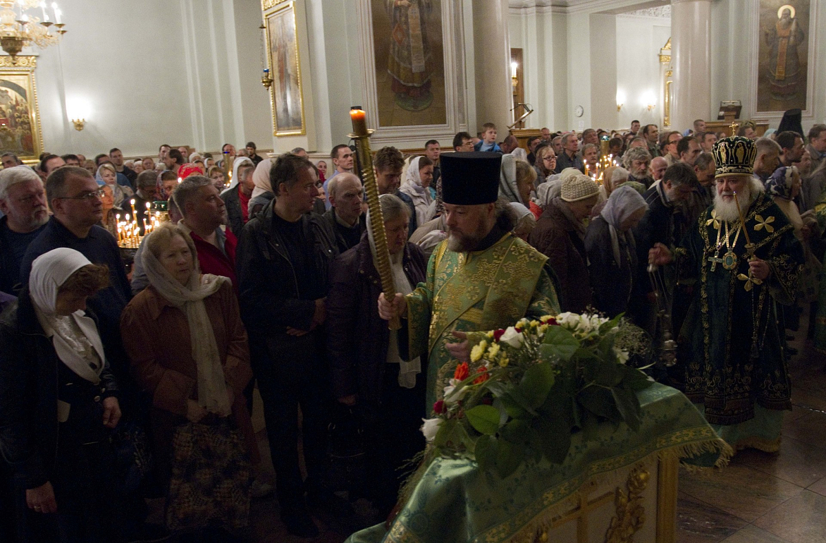 За всенощным бдением Его Высокопреосвященству сослужили наместник Даниловой обители архимандрит Алексий (Поликарпов) с братией монастыря в священном сане.