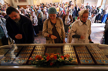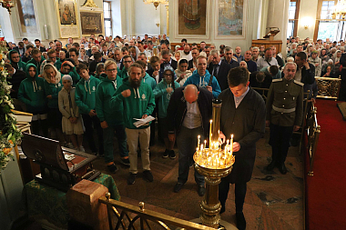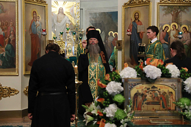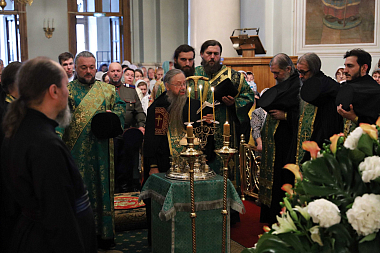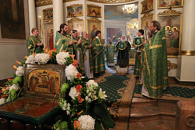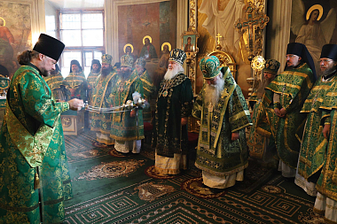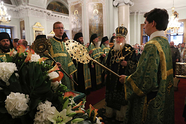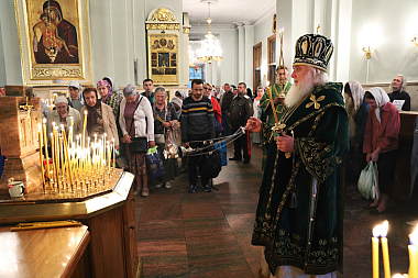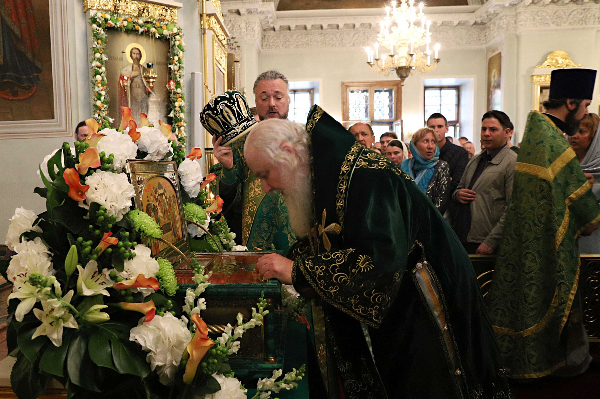 По окончании Литургии Высокопреосвященнейший владыка отслужил праздничный молебен перед ковчегом с частицами мощей святого благоверного князя Даниила Московского.