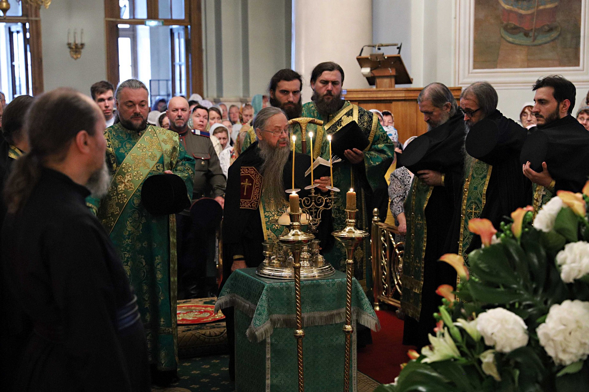Его Высокопреосвященству сослужили: архиепископ Егорьевский Матфей, викарий Патриарха Московского и всея Руси, управляющий Западным и Северо-Восточным викариатствами г. Москвы; епископ Дмитровский Феофилакт, викарий Патриарха Московского и всея Руси, управляющий Юго-Западным викариатством г. Москвы, наместник Андреевского ставропигиального мужского монастыря Москвы; епископ Бронницкий Парамон, викарий Патриарха Московского и всея Руси, управляющий Северным и Северо-Западным викариатствами г. Москвы, наместник Донского ставропигиального мужского монастыря Москвы; архимандрит Алексий (Поликарпов), наместник Данилова монастыря; насельники Даниловой обители в священном сане.