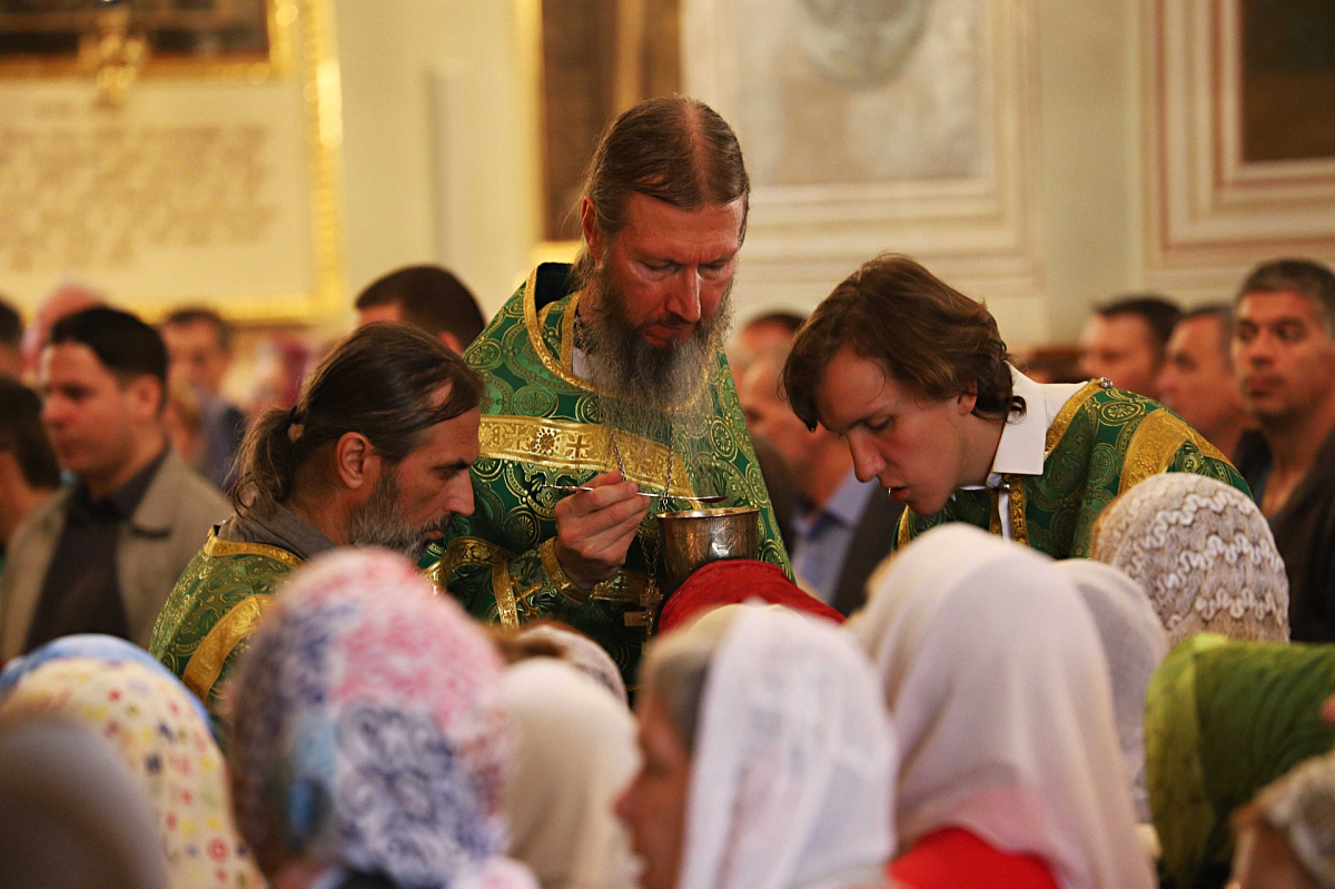 Проповедь по запричастном стихе произнес насельник Данилова монастыря игумен Феофан (Лукьянов), руководитель Сектора протокола Отдела внешних церковных связей Московского Патриархата.
