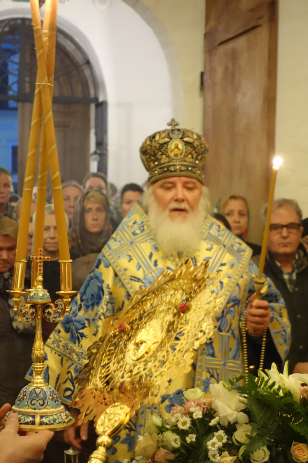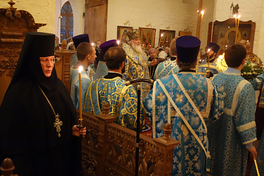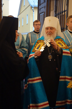 Его Высокопреосвященству сослужило духовенство обители.