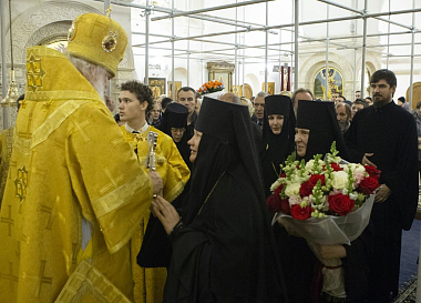 Сегодняшний день, дорогой владыка, для нашей обители является сугубой нечаянной радостью. Мы очень рады, что Святейший Патриарх Кирилл благословил Вас послужить у нас. Вы много потрудились, чтобы эта обитель стала опять светочем на небосклоне церковном, и много сделали, чтобы икону Божией Матери ”Милостивая” перенесли, чтобы собор воздвигли.