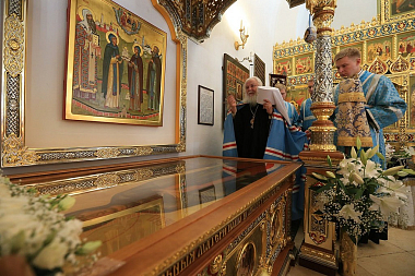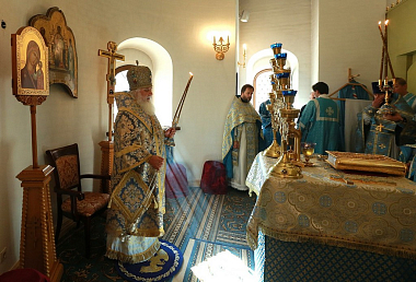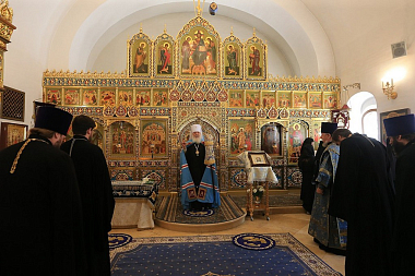 Архиерейское служение было приурочено к престольному празднику древнейшего сохранившегося храма на территории монастыря в честь Нерукотворного Образа Спасителя (год создания – 1696). В этом году обитель отмечает 25-летие совершения в Надвратном храме первой Божественной литургии и великого освящения храма в 1993 году.