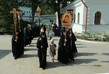 29 августа 2018 года, в день памяти перенесения из Едессы в Константинополь Нерукотворенного Образа Господа нашего Иисуса Христа, митрополит Истринский Арсений, первый викарий Святейшего Патриарха Московского и всея Руси по г. Москве, управляющий Центральным и Южным викариатствами столицы, совершил Божественную литургию и чин молебного пения с крестным ходом в Казанском приделе собора Рождества Пресвятой Богородицы Зачатьевского ставропигиального женского монастыря.
