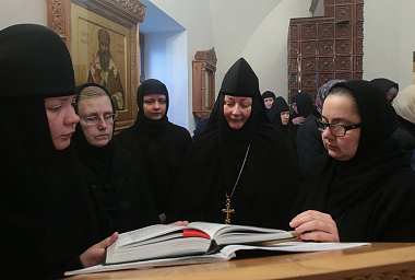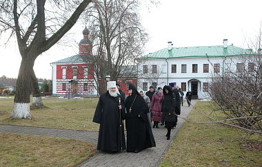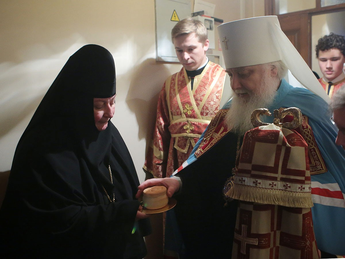 Затем игумения Мария поблагодарила Владыку за совершение Таинства Евхаристии и совместной молитвы. Матушка вспомнила историю храма, основанного первоначальницей монастыря игуменией Евгенией (Мещерской) в честь Небесной покровительницы своей дочери Анастасии при «больничном» корпусе.