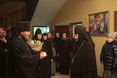 После проводов архиерея духовенство и сестры монастыря поздравили матушку игумению с престольным праздником.