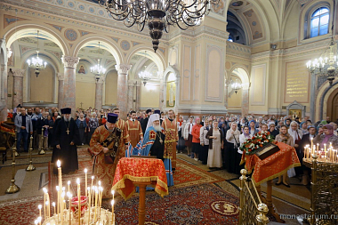 Его Высокопреосвященству сослужили архиепископ Филарет (Карагодин), епископ Балашихинский Николай, викарий Святейшего Патриарха Московского и всея Руси, секретарь Патриарха Московского и всея Руси по городу Москве протопресвитер Владимир Диваков и клирики монастыря.