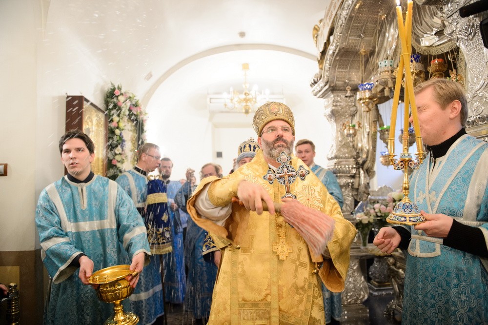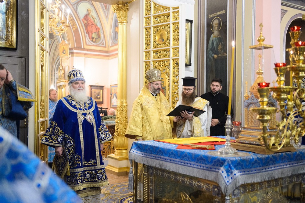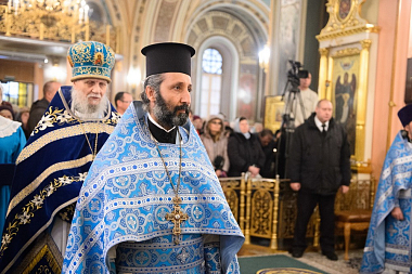 За Божественной литургией Его Высокопреосвященству сослужили представитель Антиохийской Церкви митрополит Багдадский и Кувейтский Гаттаз (Хазим), благочинный Центрального округа г. Москвы протопресвитер Владимир Диваков, благочинный Покровского благочиния г. Москвы протоиерей Александр Абрамов, духовенство Антиохийской Православной Церкви, клирики обители и храмов г. Москвы.