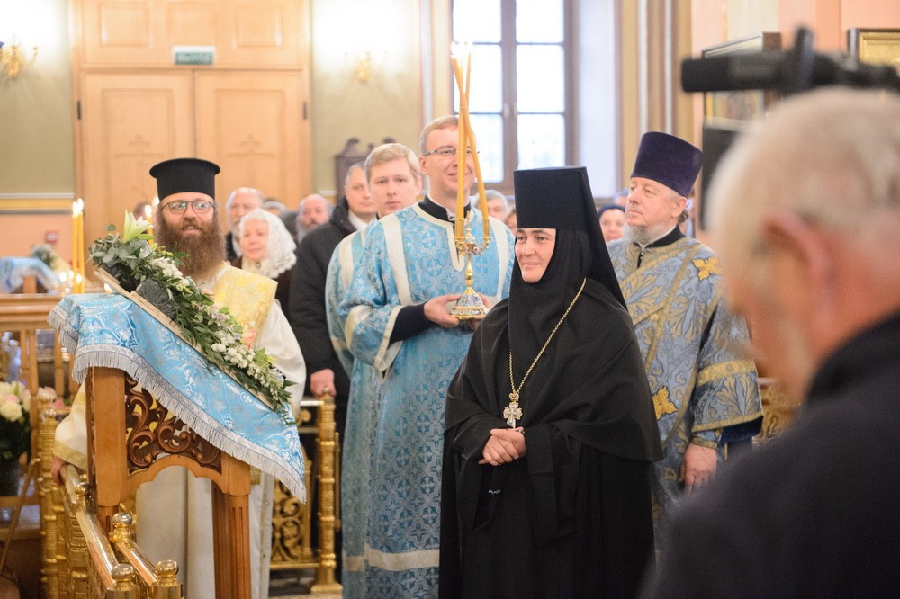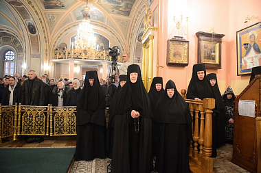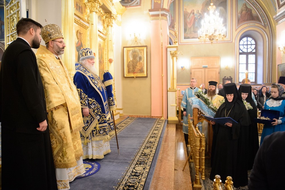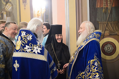 А наша соборная молитва сегодня – об Отечестве земном, о нашей Святой Руси, "о властех, воинстве и народе ея" и, в первую очередь, о здравии и благоденствии Предстоятеля нашей Церкви Святейшего Патриарха Московского и всея Руси Кирилла, нашего доброго и любящего отца. Мы от всей души благодарим Его Святейшество за внимание и заботу о своей Покровской обители, за то, что он благословил Вам, дорогой владыка, возглавить сегодня Божественную литургию. Сердечно благодарим Вас за тот праздничный настрой архиерейского богослужения, который передается всем сестрам и паломникам обители!