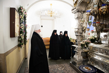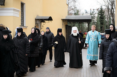 22 ноября 2018 года, в день тезоименитства святой праведной блаженной старицы Матроны Московской, первый викарий Святейшего Патриарха по городу Москве, управляющий Центральным и Южным викариатствами столицы митрополит Истринский Арсений возглавил Божественную литургию в храме Воскресения Словущего Покровского ставропигиального женского монастыря г. Москвы.