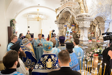 В совместном богослужении участвовали настоятельница Покровского ставропигиального женского монастыря игумения Феофания (Мискина) с сестрами обители и подворий, воспитанницы монастырского приюта для девочек, благодетели и гости монастыря, а также многочисленные прихожане и паломники.