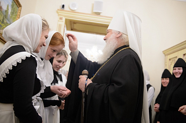 Торжество завершилось трапезой, во время которой воспитанницы монастырского приюта для девочек представили праздничный концерт.