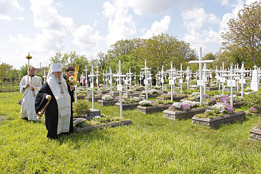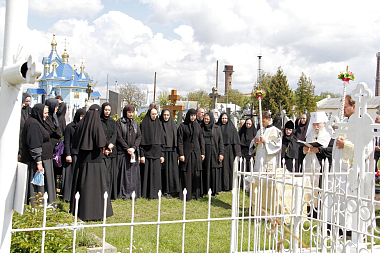Панихиду по усопшим игумениям, священнослужителям и сестрам обители на кладбище совершил митрополит Днепропетровский и Павлоградский Ириней в сослужении монастырского духовенства, затем Его Высокопреосвященство отслужил панихиду на могиле своих родителей.