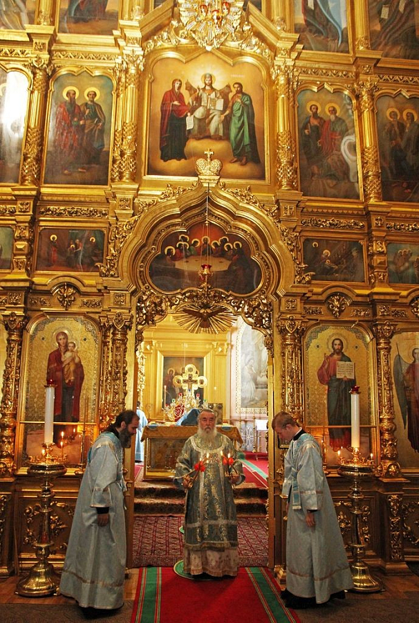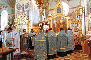 Накануне, в воскресенье вечером, Высокопреосвященнейший Ириней отслужил акафист перед чудотворным образом Божией Матери «Споручница грешных» Корецкой, а также возглавил Всенощное бдение.