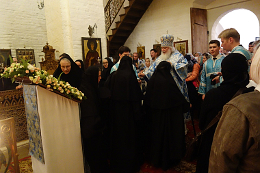 По завершении богослужения, Высокопреосвященнейший митрополит Арсений передал поздравление Его Святейшества Святейшего Патриарха Московского и всея Руси Кирилла с престольным праздником обители и обратился к молящимся с проповедью, в которой сказал: