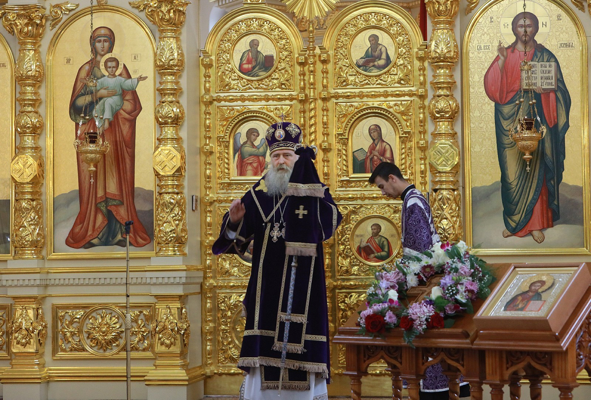 По окончании богослужения митрополит Феогност поздравил всех с праздником и обратился к собравшимся с архипастырским словом.