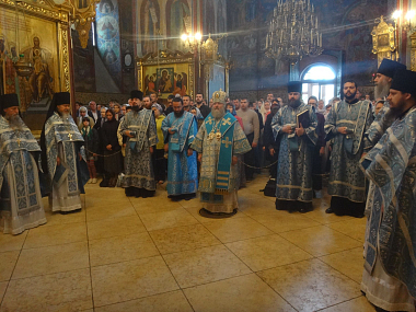 Его Высокопреосвященству сослужили: архимандрит Макарий (Веретенников); архимандрит Илия (Рейзмир), а также братия Лавры в священном сане.
