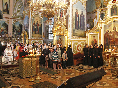 «В день отдания Преображения Господня и памяти святителя Тихона, епископа Воронежского, сподобился благословением Святейшего Патриарха Кирилла совершить Божественную литургию и иноческий постриг насельниц обители: Анны, Наталии, Лидии, Елены, Аллы и Зинаиды.