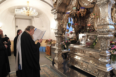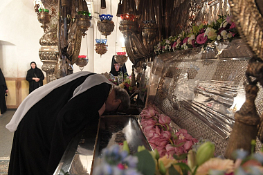 Мы сердечно благодарим Его Святейшество Святейшего Патриарха Московского и всея Руси Кирилла за то, что по его Первосвятительскому благословению сегодня Вы, Ваше Блаженство, посетили Покровский женский монастырь и поклонились святым мощам блаженной старицы Матроны Московской, нашей заступницы и покровительницы.