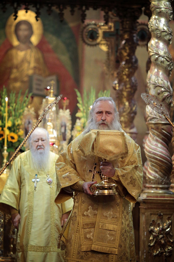 Его Высокопреосвященству сослужили: председатель Синодального отдела по монастырям и монашеству архиепископ Каширский Феогност; наместник Донского монастыря епископ Бронницкий Фома; заместитель председателя Синодального отдела по монастырям и монашеству, наместник Московского подворья Троице-Сергиевой лавры архимандрит Стефан (Тараканов); духовенство Московской городской епархии.