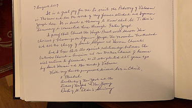 Архиепископ Михаил оставил в книге почетных гостей памятную запись и пригласил отца Иосифа принять участие в торжественном богослужении в день памяти прп. Германа Аляскинского 9 августа на Американском подворье.