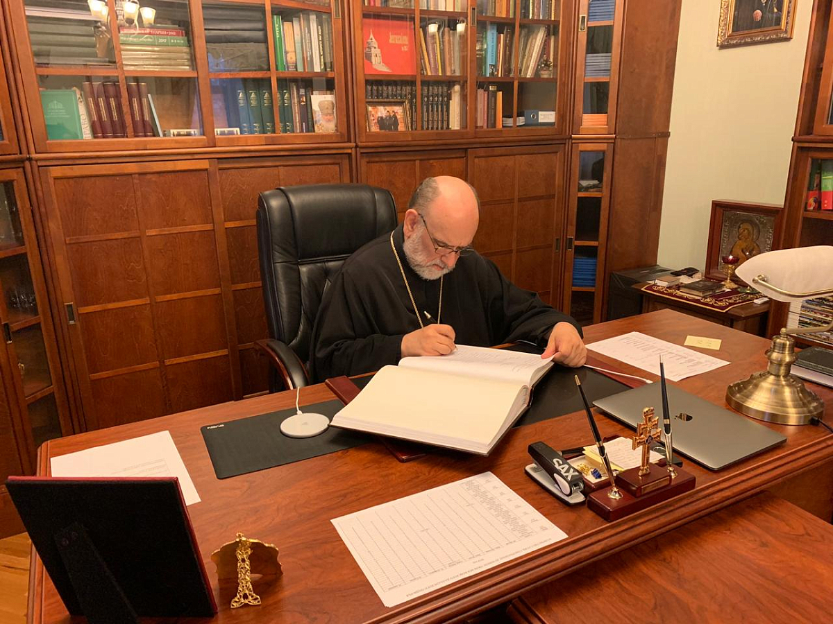 Его Высокопреосвященство сопровождал протоиерей Даниил Андреюк, настоятель храма вмц. Екатерины на Всполье, представитель ПЦА при Патриархе Московском и всея Руси.