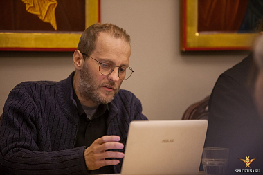 «Преподобный Паисий (Величковский) – человек, который предстает нам живым, настоящим, с которым можно, действительно, как-то и свою жизнь попробовать сообразовать, – так начал свое сообщение Петр Жгун, – для этого старец и пишет "Повесть о святом соборе", свою автобиографию, чтобы показать молодым послушникам и монахам, что он был вполне обычным человеком, болезненным, и вообще удивительно, что Бог ему дал столько лет прожить и совершить такой подвиг.