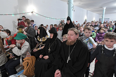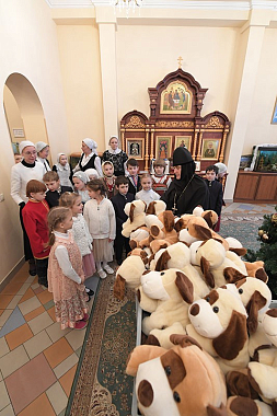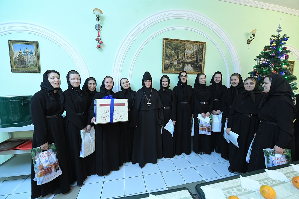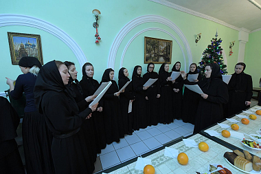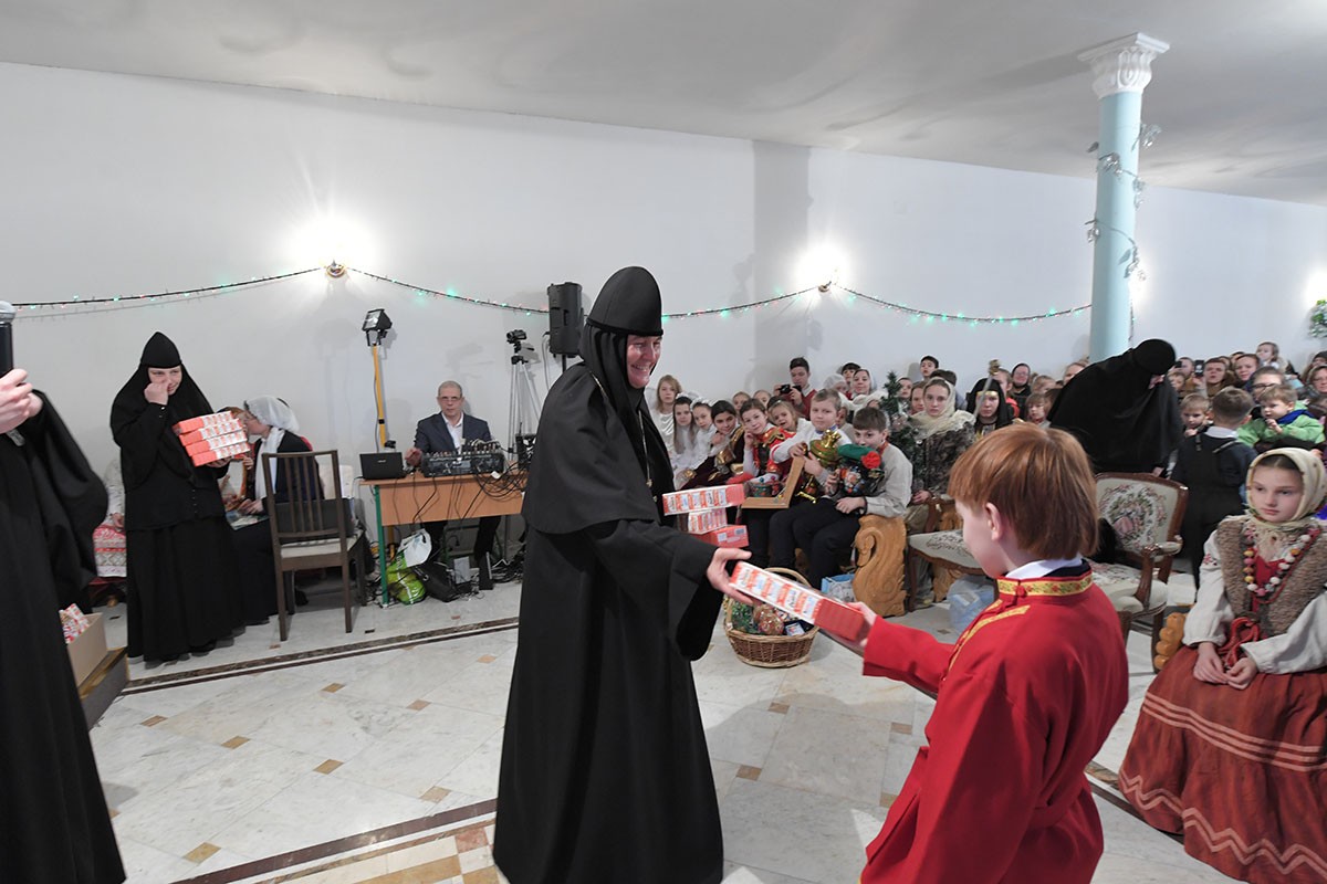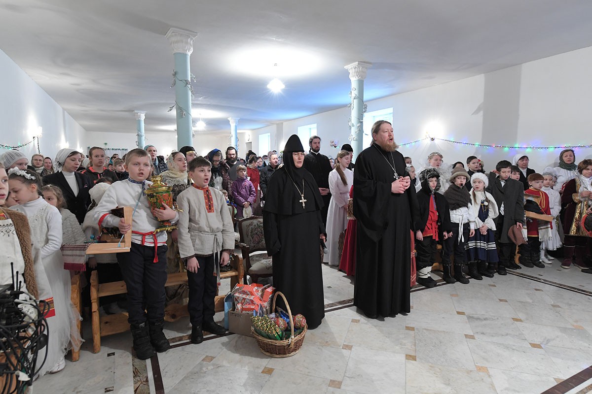 По окончании богослужения настоятельница монастыря игумения Феофания (Мискина) поздравила всех детей и гостей с праздником Рождества Христова и новолетием.