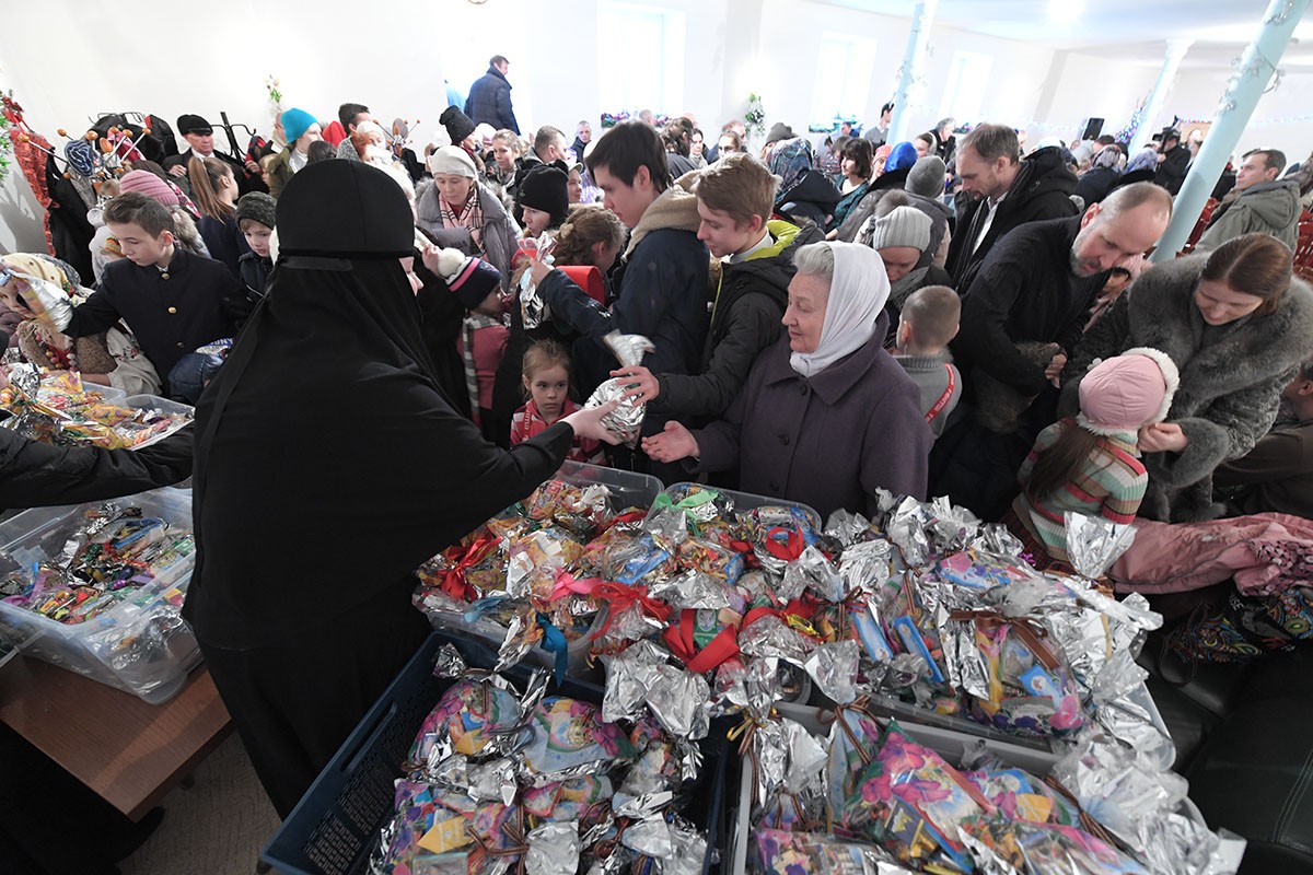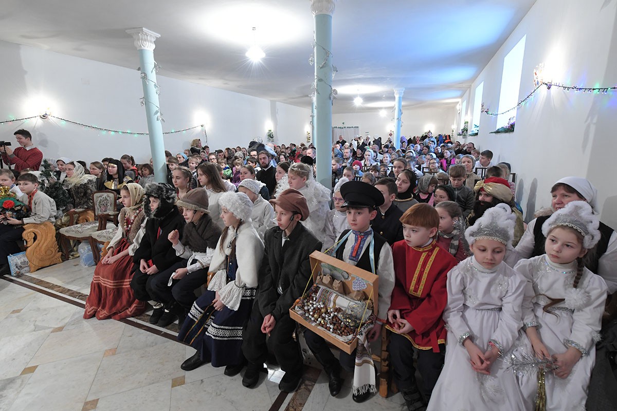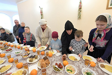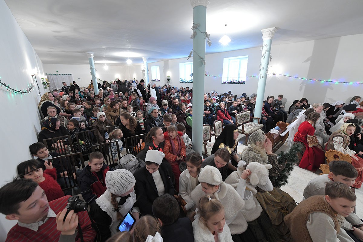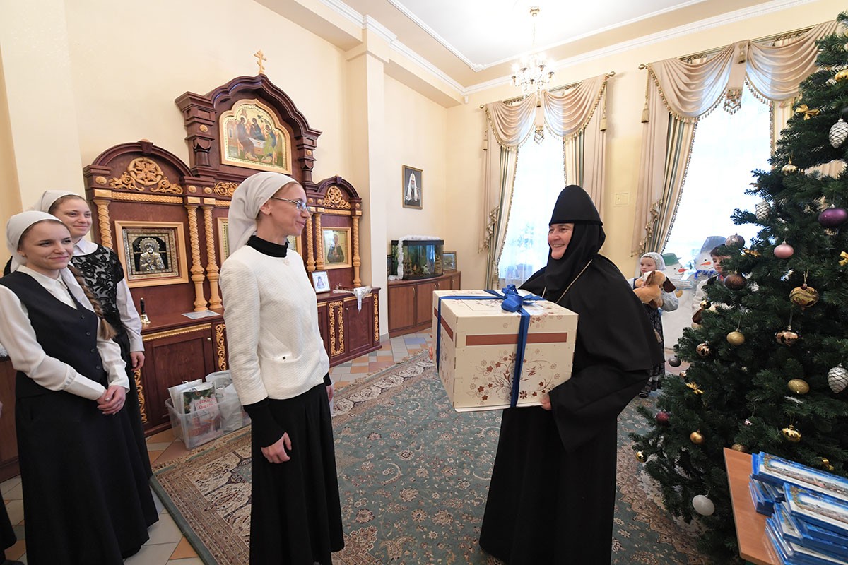 По окончании богослужения настоятельница монастыря игумения Феофания (Мискина) поздравила всех детей и гостей с праздником Рождества Христова и новолетием.