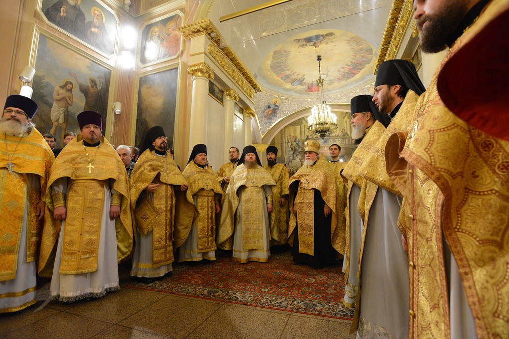 Божественную литургию в храме Святителя Николая в Толмачах возглавил наместник Николо-Угрешского монастыря игумен Варфоломей (Петров) в сослужении братии обители, ректора Николо-Угрешской духовной семинарии игумена Иоанна (Рубина) и выпускников в священном сане.