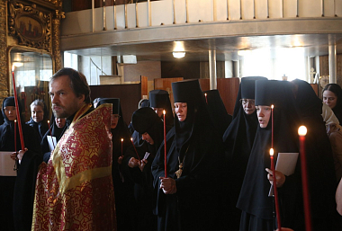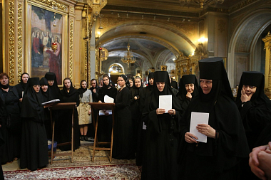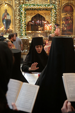 В этот же день в Зачатьевском монастыре состоялся чин благословения на годовые послушания. Настоятельница обители с насельницами совершили славление и поклонение святыням монастыря: возле гробницы прппп. Иулиании и Евпраксии Московских, чудотворной иконы Божией Матери «Милостивая», иконы сщмч. Владимира и иконы Святой Троицы с частицами мощей свв. апостолов. После поклонения игумения Иулиания открыла конверты и зачитала для каждой сестры послушания, которые ей предстоит исполнять в течение года, а также святоотеческое поучение как вдохновение и поддержку в предстоящем служении и духовном подвиге.